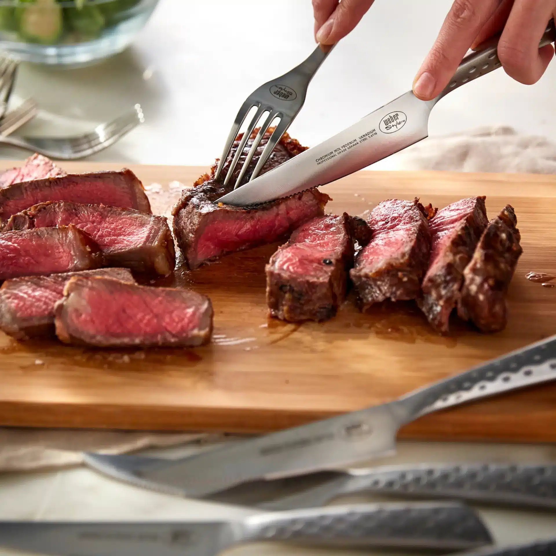 Verleihe deinem gedeckten Tisch das gewisse Etwas – mit dem Weber Deluxe Steak-Set für 6 Personen. Dieses hochwertige Besteck-Set aus Edelstahl sorgt für stilvolles Genießen und müheloses Schneiden – ob beim Grillabend mit Freunden oder dem besonderen Dinner zu zweit. Ergonomisch geformt und rostfrei, überzeugt es durch seine hochwertige Verarbeitung, spülmaschinenfeste Qualität und markantes Design.